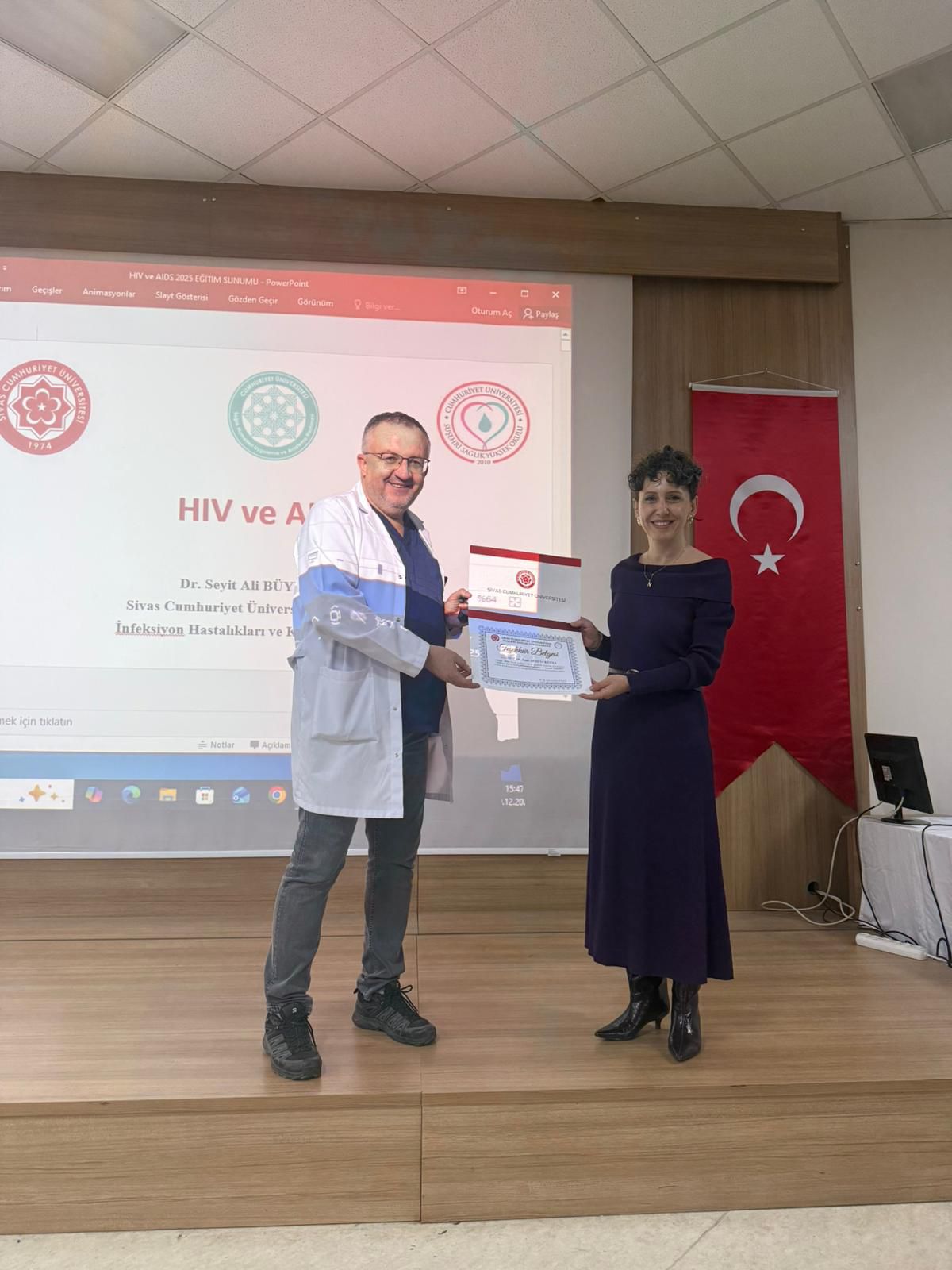 Sivas Cumhuriyet Üniversitesi Sağlık Hizmetleri Uygulama ve Araştırma Hastanesi Enfeksiyon Hastalıkları AD. Prof. Dr. Seyit Ali BÜYÜKTUNA, AIDS Haftası kapsamında Yüksekokulumuz öğrenci ve akademisyenlenlerine yönelik AIDS’den HIV’e konulu konferansın ikincisini gerçekleştirildi.