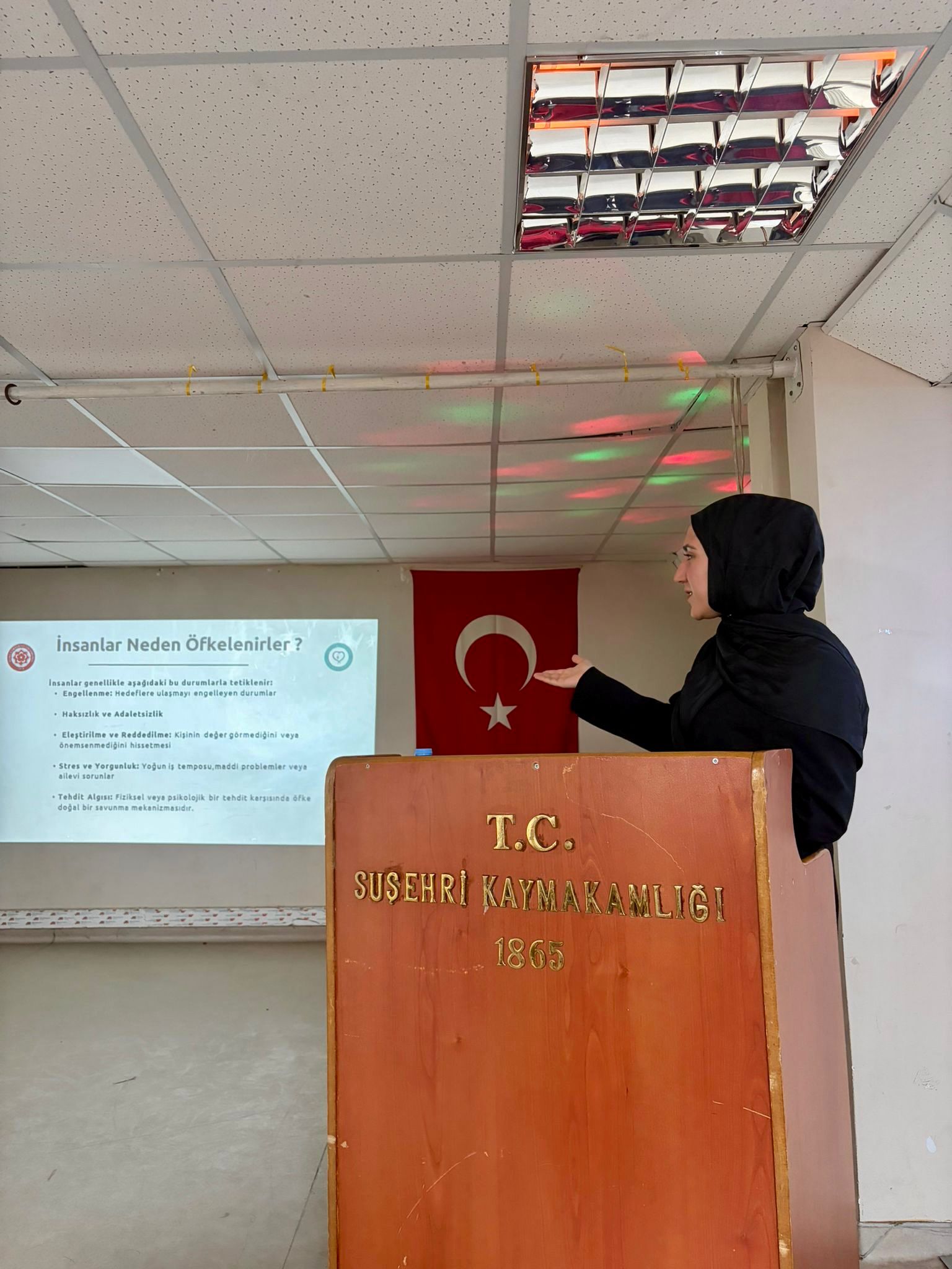 Öğretmenlere yönelik düzenlenen seminere, Yüksekokulumuz Hemşirelik Bölüm Başkanı Lütfiye Nur Uzun ile Hürriyet İlkokulu Müdürü Tayfun Sinan Duman da katılım sağladı. Seminerde öfkenin kaynakları ve öfkeyle baş etme yöntemleri ele alındı.