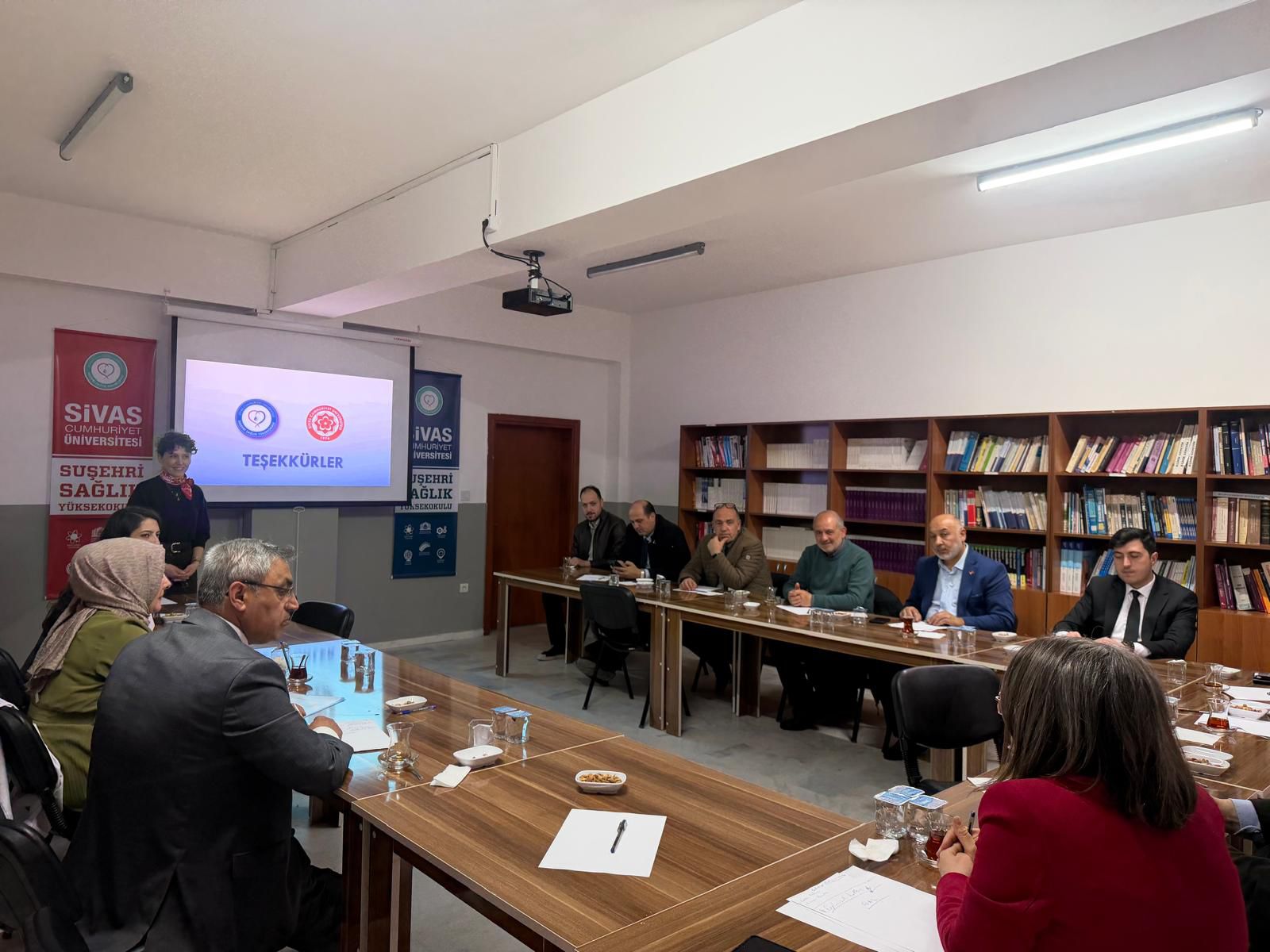 Toplantıya; Suşehri Kaymakamı Mahmut Fazıl Yıldız, Suşehri Belediye Başkanı Ahmet Ayhan Kayaoğlu, Müdür Yardımcısı Dr. Öğr. Üyesi Kadriye Aldemir Atmaca ve Hemşirelik Bölüm Başkanı Zeynep Temel Mert, Yönetim Kurulu Üyesi Doç. Dr. Fatma Tok Yıldız, İlçe Emniyet Müdürü Fatih Güzel, İlçe Jandarma Komutanı Osman Tuncer, İlçe Milli Eğitim Müdürü Erkan Yıldız, KYK Suşehri Yurt Müdürü Göksal Soylu, Kızılay Temsilcisi İsa Şahin, Yüksekokulları Koruma Geliştirme ve Yaşatma Derneği Başkanı İlyas Koçali, Mezun öğrencimiz Arş. Gör. Dr. M. Akif Sami Toker, Öğrenci Temsilcisi Buket Eda Koçyiğit, Suşehri Sosyal Hizmet Merkezi Temsilcisi Adem Aktaş ve katılım sağlamıştır.
