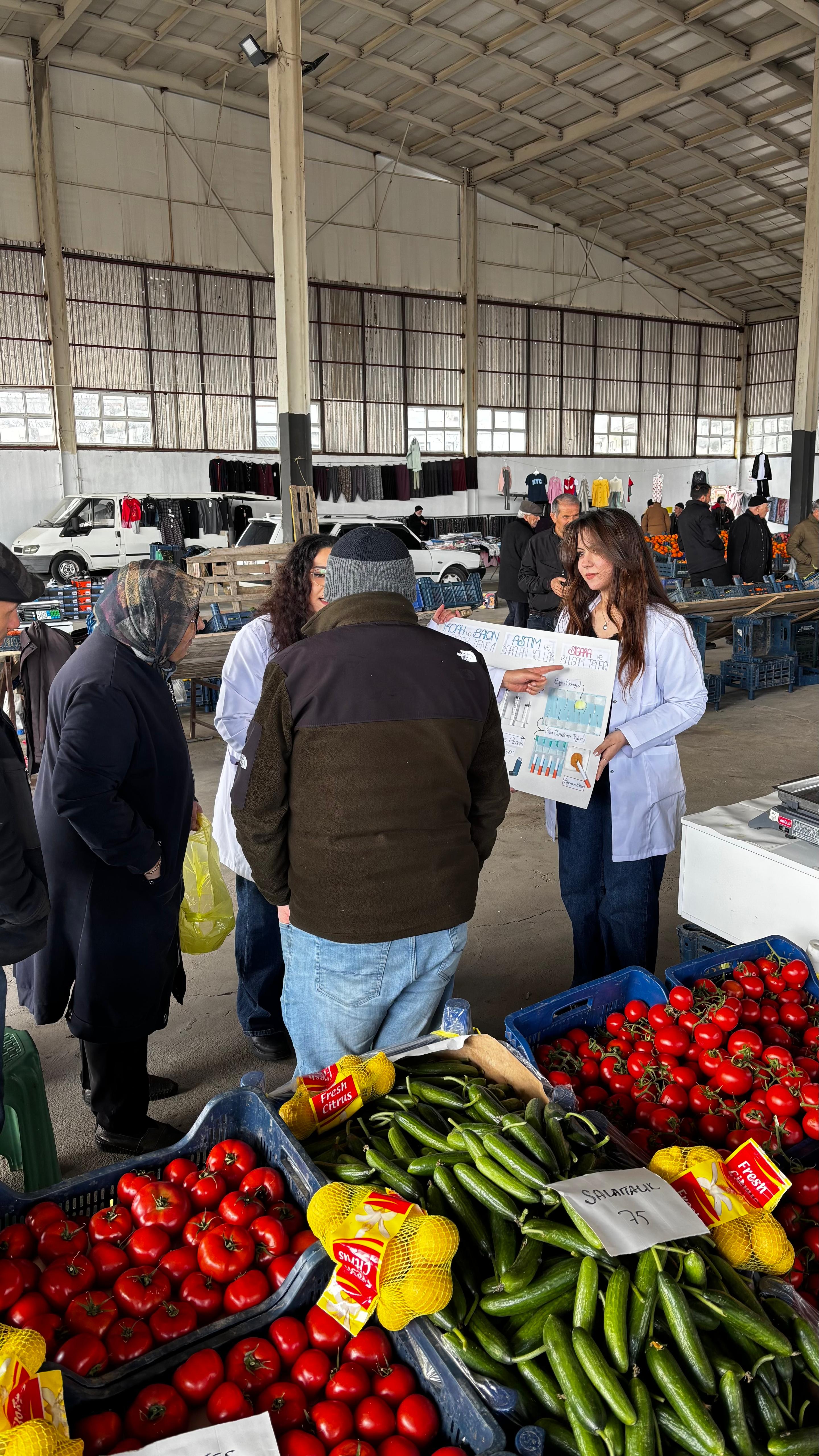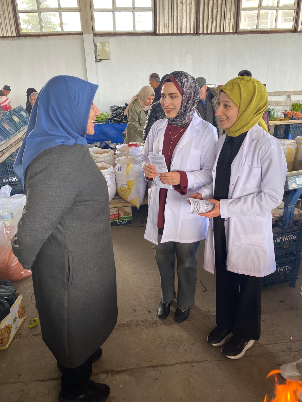 Hemşirelik öğrencileri ayrıca vatandaşların sorularını yanıtlayarak sağlık okuryazarlığını artırmaya yönelik rehberlik sağladı. Özellikle pazarda yoğun ilgi gören etkinlikte, bireylerin kendi sağlık durumlarını fark etmeleri ve erken belirtiler konusunda bilinç kazanmaları hedeflendi.